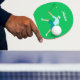 Paddle de ping pong con temática de tenis con texto personalizable.