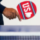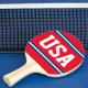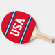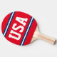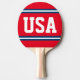 Ping pong paddle mostrado en rojo con texto: USA Personalizar este artículo o compra como está.