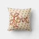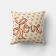 Los corazones están esparcidos a través de la almohada con la palabra amor escrita en una tipografía adorable.
