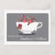 Una actividad divertida para incluirlos en la ducha de novia: coloque estas tarjetas en las mesas e invite a los clientes a dar los consejos de los recién casados que seguramente serán apreciados. También hace encantadores pastelitos para conservar. Enfrente de un suave fondo gris de paloma en la parte delantera, un bonito vaso de agua blanco repleto de flores rosadas, corales y borgoñas, con un teabag personalizado que también muestra las iniciales de la novia y el novio. Espacio en la parte de atrás para que los clientes compartan esos pequeños sabios.