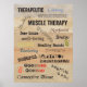 Palabras descriptivas de terapia muscular poster. Terapéutica, Terapia Muscular, Puntos Desencadenantes, Calmación, Respiración Fácil, Miofascial, Neuromuscular, Restauración, Equilibrio.