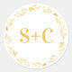 Etiquetas de bodas con flores de oro que puedes personalizar con tus iniciales para usar en sellos para sobres o favores de fiesta para tu boda, compromiso o cualquier fiesta de aniversario. © Mini Impresiones Moi