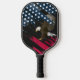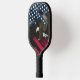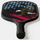 Aceite calvo con una bandera norteamericana abstracta sobre fondo de cuero negro.