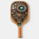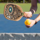 Un remo de bola de pickleball adornado con un fascinante ojo verde, un diseño único y místico que llama la atención.