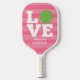 AMO con un pickleball - Actualmente la bola es verde y el fondo es rosa - pero puedes cambiar todos los colores en el área de diseño avanzado. Haga clic en el Personalizar Este botón - esto le llevará a un área de diseño donde puede mover cosas e incluso cambiar fuentes o colores - incluso el pickleball.