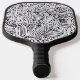 Paddle de bolas de bolas con una imagen de diseño de arte en blanco y negro de TheFabricSeal | Zazzle es un diseño artístico bohemio, caprichoso y maravilloso de color blanco y negro con estilo de argamasa creado con arte a la vista y técnicas de arte puntiagudo mandala que hacen muchas líneas y formas con flores y estrellas en la concurrida y maravillosa imagen artística. Palas de peletería, palas de bolas de pickleball de Guay, remo de bolas de pickleball divertidas, remo de pickleball divertido, remo de pickleball Personalizado, me encantan las remo de pickleball.