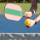 El remo de bolas de piña tropical Monograma Stripe Pickleball Paddle presenta un diseño de doble cara con un ilustracion de piña en un lado y un sencillo patrón a rayas en el otro lado. Personalizar con tus iniciales, fijadas en un tipo blanco simple y moderno.