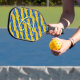 Palas De Pickleball Bandas azules y amarillas de monograma inspiradas