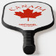 Paddle de pickleball rojo y blanco de Canadá con bandera canadiense y hoja de arce. Personalizable. Un gran regalo para los canadienses.