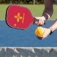 Paddle de pelota con la ciudad de Albuquerque, Nuevo México; bandera roja con pájaro amarillo y símbolo