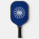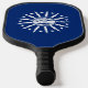 Paddle de pelota con bandera de la ciudad de Buffalo, Nueva York; bandera azul con sello blanco de la ciudad y 13 pernos relámpago