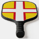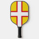 Paddle de pelota de pádel con diseño con una bandera del histórico condado de Dorset, en Inglaterra, Gran Bretaña; bandera amarilla con una cruz blanca con una frontera roja