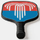 Paddle de bolas con un diseño con la bandera de Kansas City, Missouri. Una bandera roja y ondulada con un emblema blanco estilizado en el centro