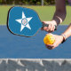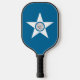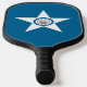 Paddle de pelota con bandera de Houston, Texas; bandera azul con sello de Houston en una estrella blanca, con ilustracion de un tren
