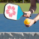 Paddle de bolas con un diseño con la bandera de Salem, Oregón. Una bandera blanca y azul con una flor de cerezo rosa