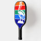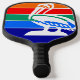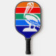 Paddle de bolas con un diseño con la bandera de San Petersburgo, Florida. Bandera de rayas naranjas, rojas, verdes, azules y azul marino con un símbolo de pelícano blanco