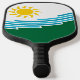 Paddle de bolas con un diseño con la bandera de Spokane, Washington. Bandera blanca y verde con líneas azules que simbolizan el río Spokane y las cataratas Spokane y un sol amarillo