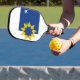 Paddle de pelota con un diseño con la bandera de Topeka, Kansas. Una bandera azul y blanca con un símbolo de estrella amarilla
