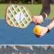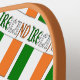 Bandera irlandesa verde, blanca y naranja, con la palabra IRLANDA debajo, en los colores de la bandera, en un remo de pickleball. El diseño está embaldosado para dar un toque más artístico. Los cuadrados blancos y sarcásticos le dan un lugar donde usted puede personalizar con su nombre. Si prefieres dar un regalo personalizado, sólo tienes que añadir el nombre de otra persona.