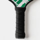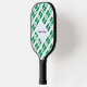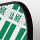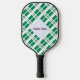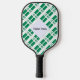 La bandera nigeriana, dos franjas verticales verdes a cada lado de una franja vertical blanca, con la palabra NIGERIA debajo, en los colores de la bandera. Un espacio blanco de cuadrados chillones tiene un lugar para tu nombre con un toque personalizado. Si desea crear una paleta de pickleball personalizada para un regalo, simplemente agregue el nombre de otra persona.