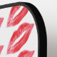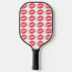Divertido monogramado de lápiz labial besa pala de pelota de pepinillo.