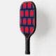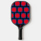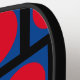 Este diseño tiene un divertido patrón compuesto de cajas azules y círculos rojos, sobre un fondo negro. Este remo se puede personalizar cambiando los colores. Estas paletas están aprobadas para su uso por USA Pickleball (anteriormente USAPA). Puedes elegir tu color de agarre, negro, blanco o bronceado. Por un suplemento, podrá adquirir una cubierta protectora y una pelota de baloncesto al aire libre.