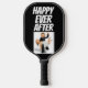 FELIZ DESPUÉS DE QUE EL BODA REGALO PADDLE DE PICKLEBALL. SOBRE LA PAREJA DE RODILLAS.