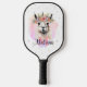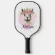 Una pala de pickleball personalizada y con una llama floral adorable sobre un suave fondo rosa. Este diseño único cuenta con una llama blanca adorable con una corona de flores silvestres. El monograma puede ser personalizado.