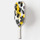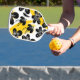Make a statement on the court with this striking pickleball paddle featuring oversized black blossoms, crisp white stamens, and energetic yellow brushstroke accents. The high‑contrast palette gives the design a modern, artistic edge, while the organic floral shapes add warmth and personality. Paired with a speckled white grip, this paddle blends performance with style — perfect for players who love gear that stands out as much as their game.