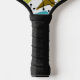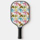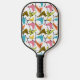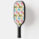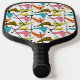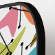 Esta paleta de pickleball tiene un diseño moderno de mediados de siglo de boomerang dispersos por los segmentos que los cruzan.