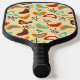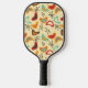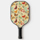 Esta paleta de pickleball tiene un diseño moderno de boomerang de mediados del siglo XX en colores y estrellas de los años 70.