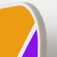 Este diseño moderno y elegante presenta rayas de carreras en diagonal doradas amarillas y violetas en un fondo blanco brillante.