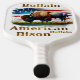 Palas De Pickleball Búfalo de pie en campo de hierba con bandera estad