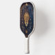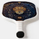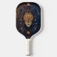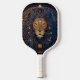 Cabeza de león Celestial Monograma moderno Paddle de bola de pickleball Este moderno diseño de remo presenta un fondo azul oscuro y negro con una cabeza de león celestial en oro y azul, y con tu texto inicial en negrita en oro para un aspecto simple y elegante, pero profesional.
