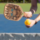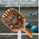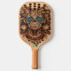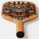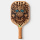 Un remo de bolas de pato con un cráneo intrincadamente grabado rodeado de flores vibrantes, creando un diseño único y artístico.
