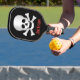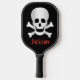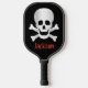 Este diseño presenta un cráneo y unos huesos cruzados sobre un fondo negro.