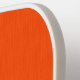 Solid orange background with a subtle vertical texture. The warm, vibrant hue conveys a sense of energy and positivity.
