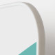 Esta moda, de diseño deportivo, presenta un fondo blanco con rayas de carreras de acentos horizontales de color rosa y agua.
