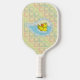 Chaucer el pato amarillo de goma flota entre las burbujas en una bañera, esperando su próxima aventura. Un extraño patrón de cuadrados y círculos coloridos sobre una base amarilla crea un escenario divertido para la escena cerrada de burbujas.
