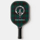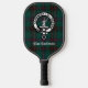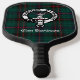 Elegante paleta de pickleball presenta el fondo del patrón de estrado tartán del Clan Davidson escocés con insignia escudo y superposición de texto