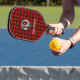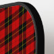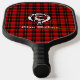 Estiloso remo de pickleball con insignia escudo del clan escocés Wallace y texto de personalizable sobre fondo tartán