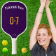 Dark Purple team-style paddle with bold gold number and optional name. Designed for league players who want sporty, premium, customizable equipment.