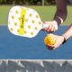 Play in style with this trendy pickleball paddle featuring a bright yellow wildflower pattern and a customizable name banner. Perfect for pickleball lovers who want a fun and personal touch on the court! This modern floral design makes a great gift for players, teammates, or anyone obsessed with the fastest-growing sport in the USA. Great Christmas gift!