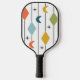 Esta paleta de pickleball tiene un diseño moderno de mediados de siglo de líneas verticales con diamantes y boomerangs, con starburst esparcidas en el fondo.