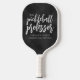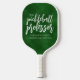 Distracta (y saca un levantamiento) a tu oponente con esta majestuosa remo de pickleball, que nos dice que "los profesores de pickleball hacen mucho de comer y manejar" en un pizarrón verde. Al revés se muestra el diseño idéntico en un fondo negro de pizarra. Diseño © W.H. Sim. Ver más en zazzle.com/wordsofwhimsy