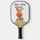 Paleta de pickleball personalizada para despedida de soltera con pickleballs rojos, verdes, naranjas y amarillos. Sirve una rebanada de paraíso tropical con nuestra invitación para fiesta de despedida de soltera de pickleball Dinks and Drinks. Con un gráfico vibrante de un cóctel Huracán de color naranja adornado con pickleballs en forma de rodajas de lima, rodajas de naranja y cerezas maraschino, esta colección es perfecta para celebrar el último swing de la novia antes del anillo o reunir a tus amigas favoritas de pickleball para pasar un buen rato. Desde invitaciones llamativas hasta servilletas, platos, tazas y copas de vino a juego en tonos de naranja, verde lima y rojo cereza, nuestra colección tiene todo lo que necesitas para hacer que tu fiesta de despedida de soltera sea inolvidable.