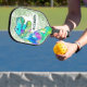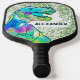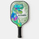 Colorido Dinosaur T rex ruge murciélago de pickleball Jurásico personalizado, ideal para niños y adultos que aman los dinos. Plantillas fáciles de usar para el nombre personalizado del niño. Pintura original de la artista Catherine Sweetman