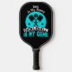 Tu nombre declara que el pickleball es tu juego. Azul y blanco sobre un fondo negro.