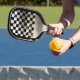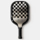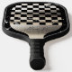 This paddle blends industrial strength with refined style, designed for players who appreciate both performance and aesthetics. The face showcases a bold checkerboard pattern in brushed steel, offering a sleek, metallic finish that gleams with every movement. Framed by a dramatic black marble edge, veined in white, the design evokes luxury and precision.