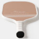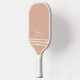 Un atrevido pádel de tenis de mesa rosa con un diseño moderno y elegante, para personalizar con su nombre... fondo rosa rubor, tres franjas blancas horizontales y paralelas, nombre de pila de guiones y delgado sans serif apellido...